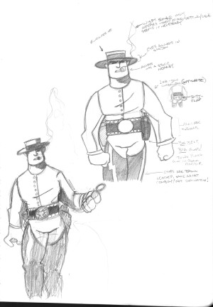 Long John is a comic a long time in the making. Though the “gunfighter wakes up in only his long johns” is not a new idea (re: Silverado), it was one I hadn’t seen before I had a really weird dream about it in 2002. The next morning, I woke up and drew what I remembered: