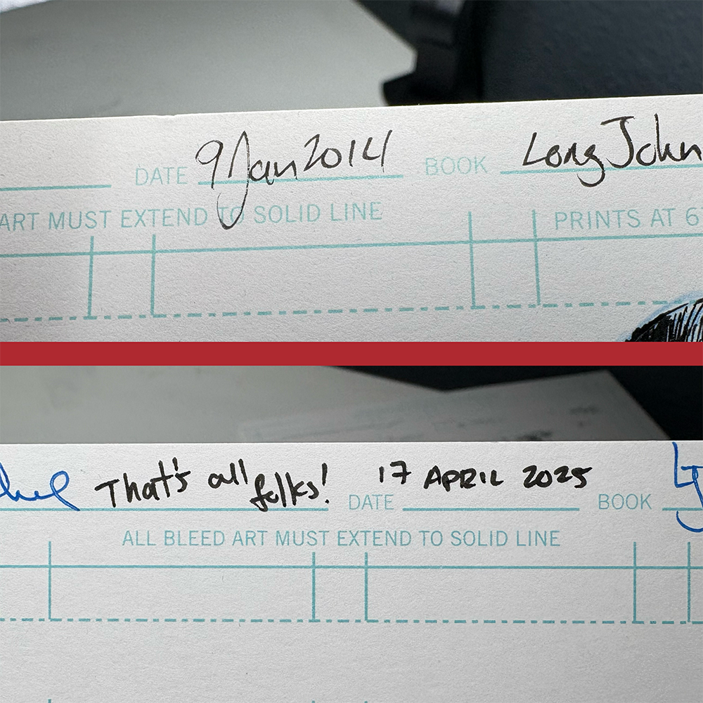 I was also worrying that I might be adding pages because my brain wasn’t ready to be done with Long John, a story and process that has been at the front of my life for 11 years, more if you count when I started to really develop the character and story.