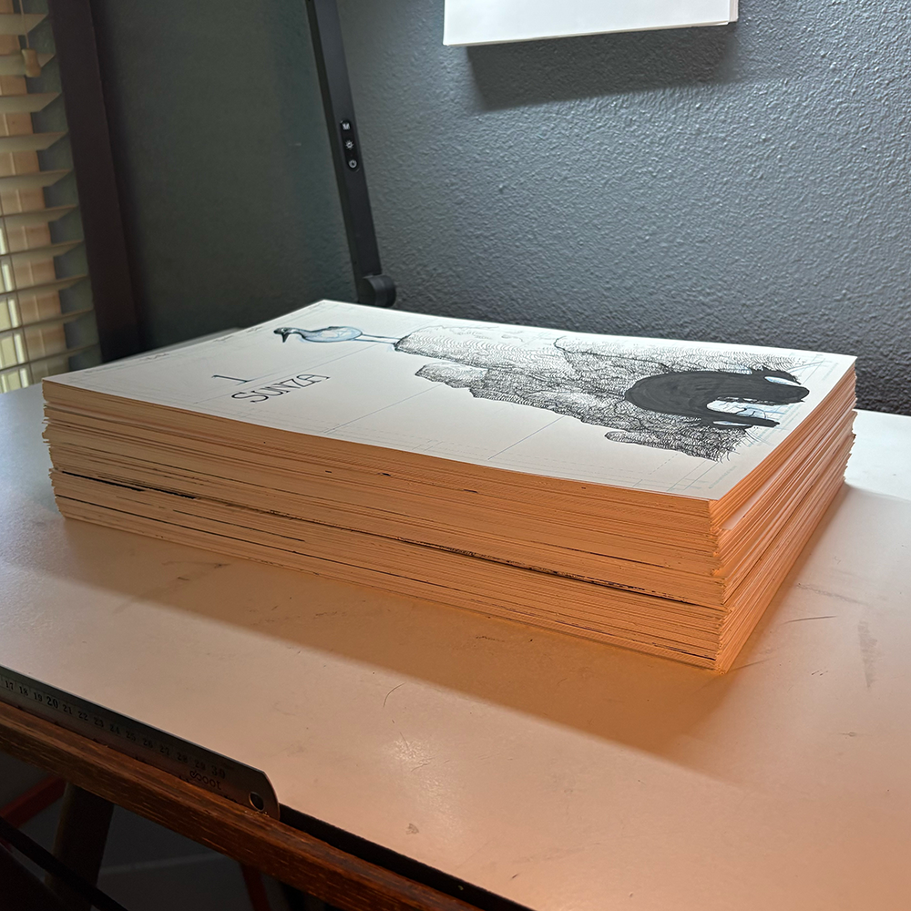 That’s not completely true; I have a cover to draw (though I might do that digitally) and I haven’t decide what I’m doing for extra content for the book (or if I want to try and fund a collected edition through Kickstarter), but as far as telling the story of this series, all the pages are done.