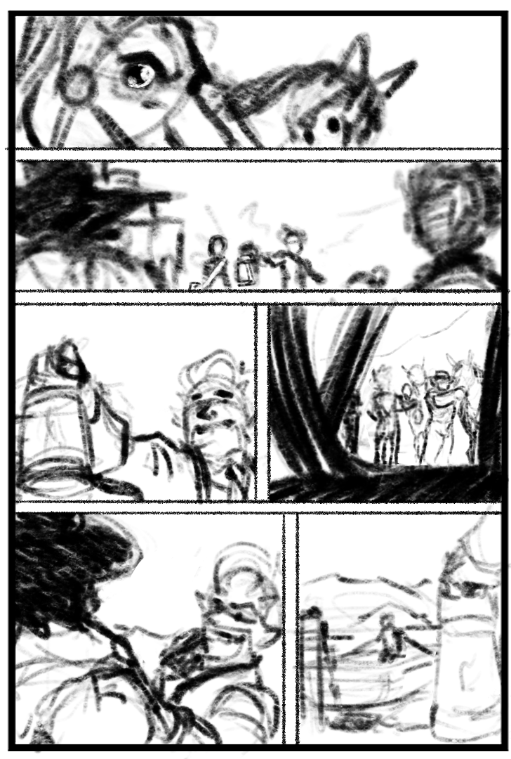 This might be one of those situations where if you’re only reading the comic online then you’re missing out on a little bit of story. This page (and the pages that take place in the coach), while being a bit of a narrative dump, is the nexus point between the main comic and the two Hellrider Jackie short stories that have been told; the first––”Save the Bones“––was at the end of Volume 1 (and this was published on the website) and the second––”The Patient Feast”––that was included at the end of Volume 4, which has not yet been published on the website.