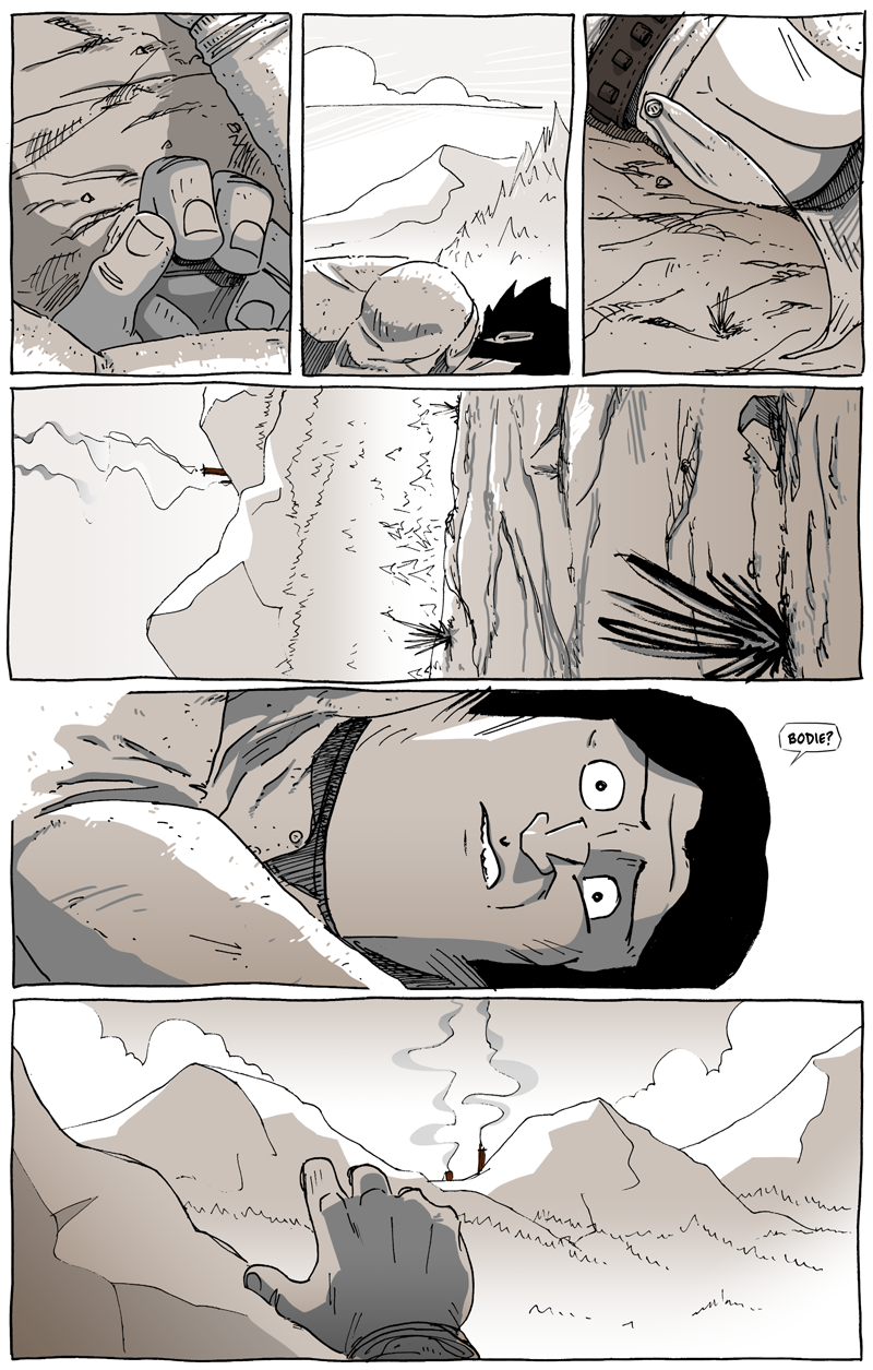 (There’s even a reference to the jail scene.) Like a good song, you want people to be singing it after it’s done. While I can’t have you sing a comic, I can try and pique your interest, a memory, to get you to cock your head and say, “I think I’ve seen this before.” I want readers to hunt and to find and to make connections and make you ask, “Why?” if only to have you find answers on your own. At the very least, it should signal that this page is important, narratively. So, in case you were wondering––yes, the references in this page are intentional.
