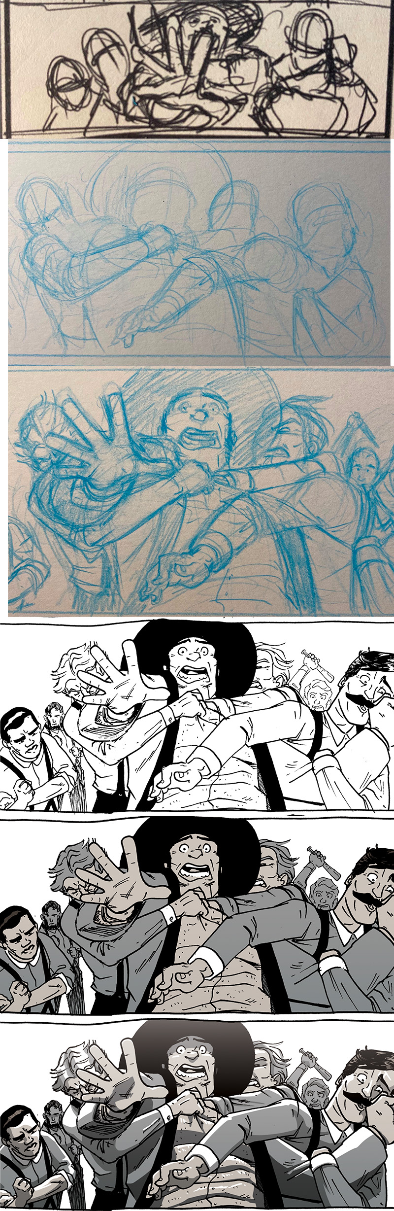 I’m not saying I’m as good or better than any of the professional storytellers that I still look up to. But seeing these steps shows me the level of thought I put into my work that, even if I still have room to grow, I can see how much work I put into each and every panel in the first place. To an extent, recording my own process really helped my confidence. There’s the nagging self-doubt that demands I’m just making lucky choices and it’s a miracle it came together at all. But I have proof that says otherwise. I can look at these stages and clearly see that I know what I’m doing and I’m good at it, even though it’s within the boundaries of my ability. If anything, being fascinated by process has given me my confidence and moves those walls that I could hit––and used to hit––off the road completely.