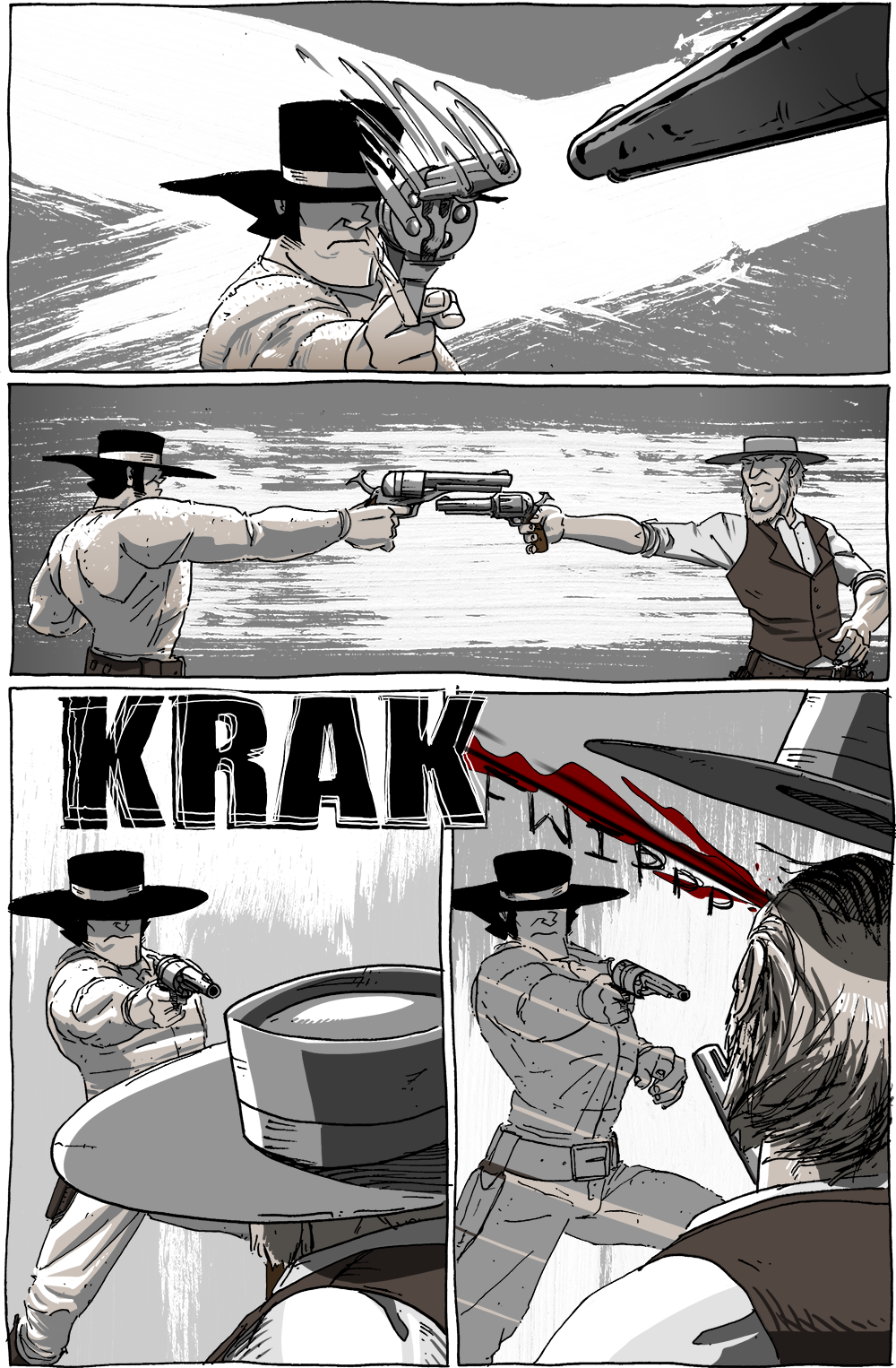 In the case of the off-panel gunfire on this page, I used the most baseline font that everyone knows: Impact.