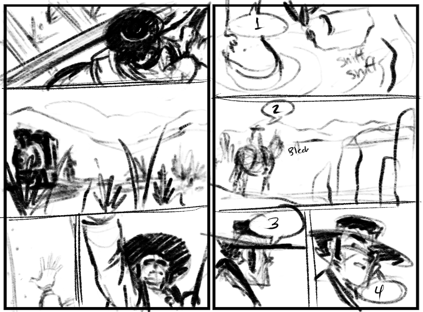 With this scene of Long John traveling, it would be boring to show every step he takes and every stop he makes from Bodie to Mono Lake because it’s an empty and quiet stretch of land. The relative lack of dialogue also makes these pages the easier to skim and turn past, making them the pages that the readers will likely spend the least amount of time with. Again, that’s okay! That’s just how comics work! A montage is not a waste of space, it’s a tool being knowingly used for a purpose.