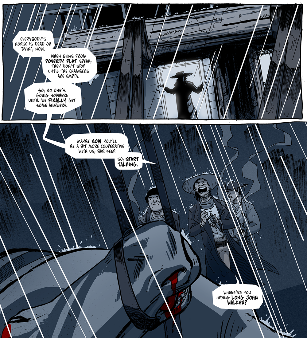 This page may look a bit odd, and that’s because I cut off the bottom of the page. This page contains imagery of animal violence and, in the interest of some kid stumbling upon the website, I just wanted to take all precautions. However, the full, unedited page will be the one included in the print edition of “Dead Words.”