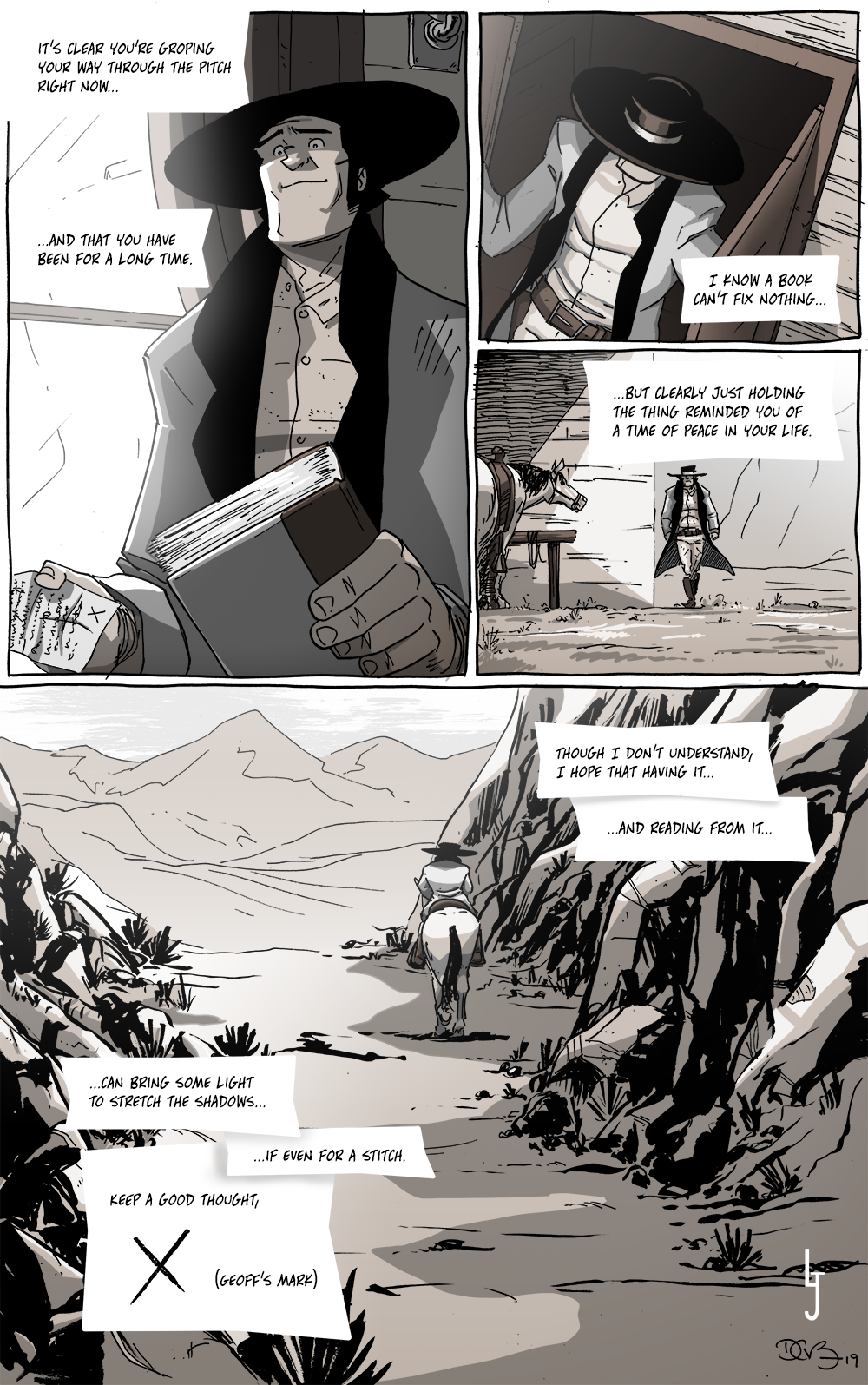 As a chapter, I think “Dead Words” is my most complete work in terms of narrative, theme, and execution. All the pieces fit together here that gave the chapter its own voice and message while still being a part of the gestalt that is the larger Long John story. Of course, that’s how I feel about it; how you regard the chapter is completely out of my control, as it should be.