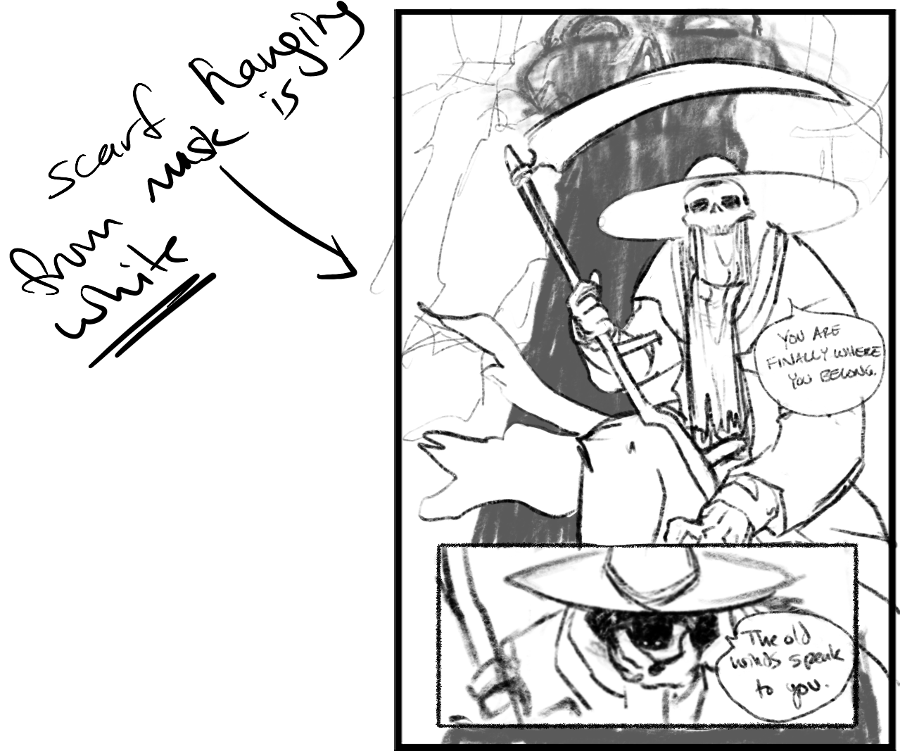 In hindsight, it’s obvious why it bothered me––it is a trope of the western genre, something I tried to avoid or invert as much as possible throughout the series. However, here I felt like I had to do it, and every iteration of it was horrible because it ended up being long, boring, and thematically empty. I don’t think there’s any plot point in the story that requires a showdown to tie up the thread, and it took a long time to figure that out. Or, more specifically, to do a showdown in a way that would be appropriate to Long John.