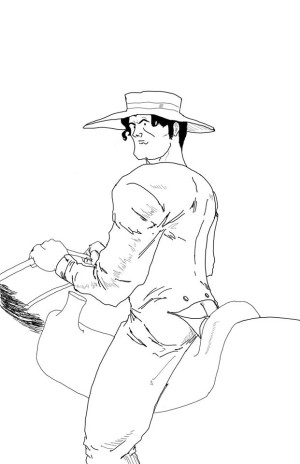I met Kyrun at this year’s Free Comic Book Day festivities held at my local comic book shop, Empire’s Comics Vault, as we were seated next to each other in the mini-con going on inside the shop. He’s a great, funny guy who is one of the most passionate creators I’ve ever met. His dedication is infectious. Last week, while sitting on the couch watching television, I drew the main character from Shaman’s Destiny, Malik, and posted it on Facebook. Within 24 hours, Kyrun posted his response––Long John astride a horse. It’s great to see other artists’ interpretations of original characters and I’m honored to have the first one be from an up and coming local talent. Thanks again, Kyrun!