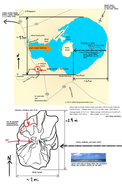 I say all of that because I’ve never been to Paoha Island. Obviously, you can see it from the shore. It is described as having peaks of about 200 feet, but generally, it’s pretty flat and arid. It is, however, a big island––about 2 miles long and 3.5 square miles in area. I wish I had gone out and stomped around it a bit, and maybe I still will, but it is a trek to get out there and back. The Paoha Island in this story is a fictional place made to provide a trial and change for the protagonist and it’s the biggest liberty I’ve taken in representing the region. That is especially true for what comes next.