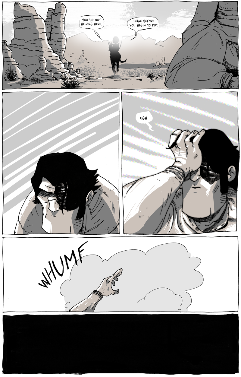 I think all of this doubt is pinned by a single worry that, I think, is still completely justified: can I get people to read a comic that’s a western that doesn’t have any sci-fi or horror tropes attached to it (I mean, aside from the lady wearing a skull on her face and carrying a scythe)? It’s still too early to tell. Though it has only been ten pages, the nature of it being a webcomic that releases twice a week is that the experience slows down tremendously.