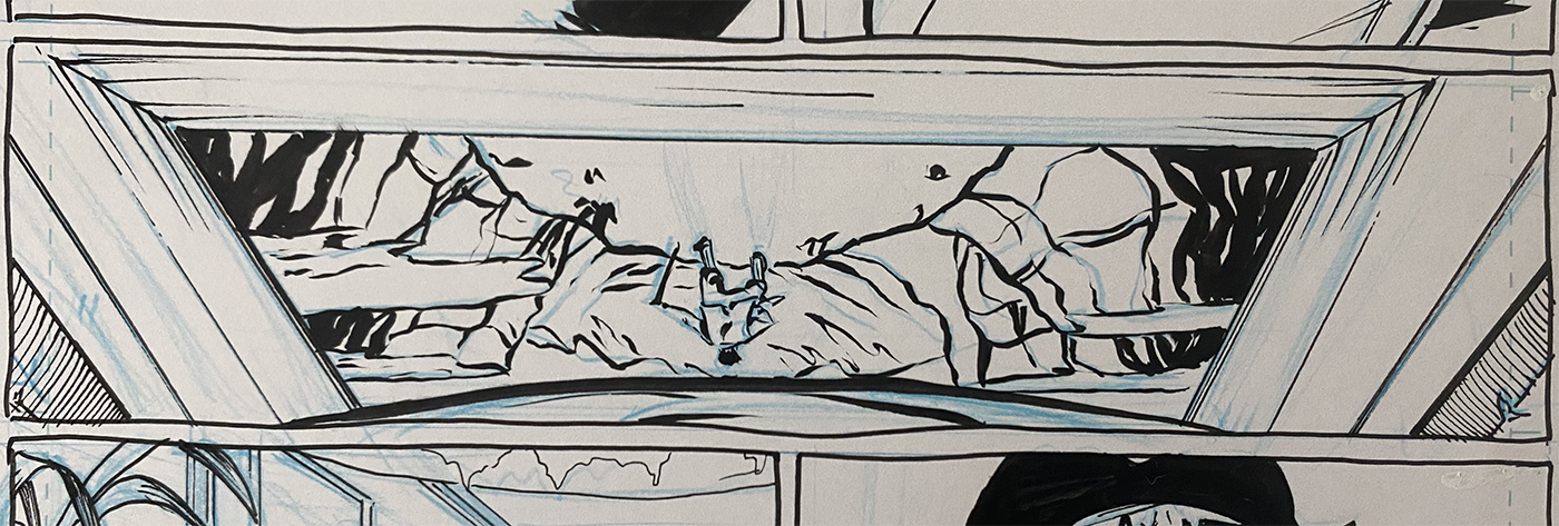 I then inked the pencils on the final page itself, which allowed it to maintain a cohesive look with everything else. It was a fun experiment where I got to use all of my artistic skills––physical and digital––a type of experience that threads throughout all of this chapter.