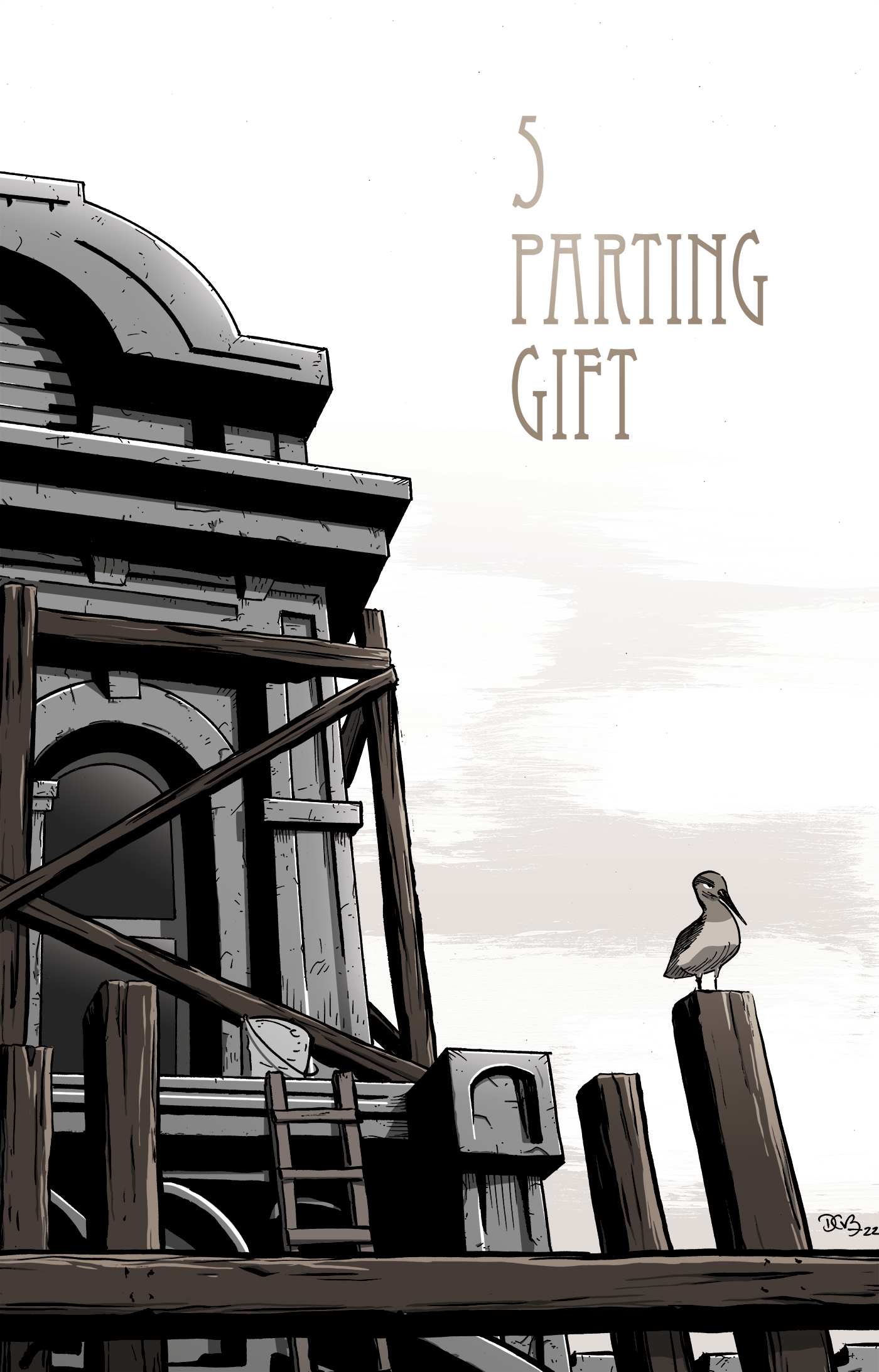 When it comes to writing and planning Long John, I think a lot about beginnings and endings both in terms of plot and visuals (it is a comic, after all) and how they all interact with each other: the beginning of a chapter with the end, the end of a chapter with the beginning of the next, and so on. I think the most thorough use of call backs can be found in Chapter 3 where I use a visual call back at the beginning and in the middle of the chapter, but I also call back to Chapter 1.