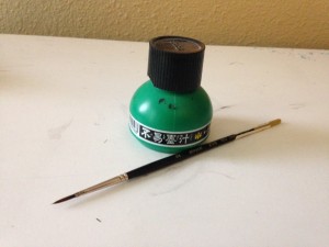 Buried in frustration, and trying to adhere to my rules, I threw caution to the wind and got out my bottle of ink and brush: