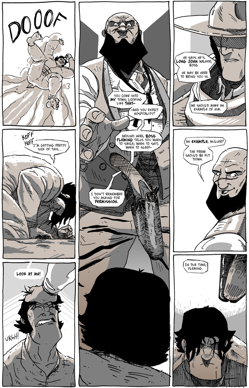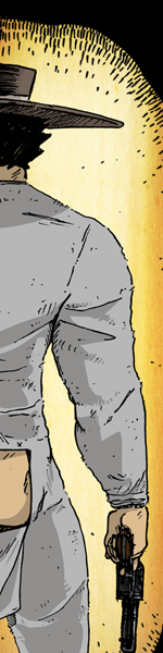 As I mentioned on the Serious Talk. Seriously podcast, I decided to tell a heightened reality western (meaning that if everybody went just a little more crazy then this could actually happen), set it in a real place, and draw the characters larger than life. I kind of wanted Long John to look like we imagine tall tales to be. When I hit on that idea, my first thought was of video games (which shouldn’t surprise any of my old friends).
