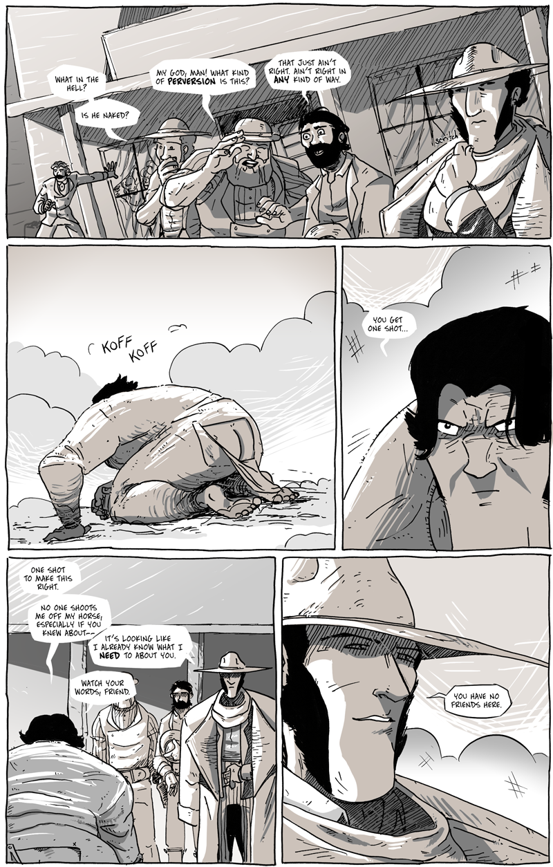 For Long John, I wanted something with a very hand-written feel but also was clean and still looked like it belonged in a dialogue balloon (I believe I’ve already expressed my umbrage with people who use fancy fonts for dialogue––SHAME ON YOU). For Eben07, I used the fairly standard Digital Strip font that is basically a standard free font you can find almost anywhere. It’s a good looking font, but it’s a bit too formal for something like Long John. I ended up finding Blambot’s Fold and Staple font and have been incredibly happy with it. At first glance, it looks like a fairly standard dialogue font, but it does have quite a bit of ruggedness on the edges that make it, dare I say, fun to look at because it has a bit of quirk to it.
