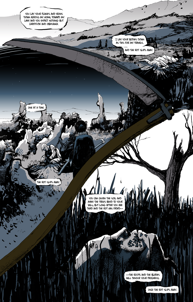 That’s wonderful to hear, Elisa. This page––and, I would argue, Josh’s art in general––grows on you even when you walk away from it. His stuff is haunting and unforgiving but still carries a strange sense of peace that makes it seem like these unforgiving worlds are actually okay.