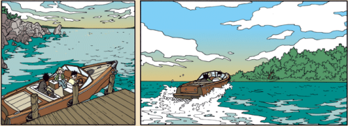 Though a chameleon of an artist, Jonny Crossbones draws from (pardon the pun) the ligne claire style most commonly associated with Herge and Tintin. What this means is that the lines are very uniform in thickness and style and is relegated to simple outline and detail––very little rendering to help “round out” figures and form is done. And it is beautiful.
