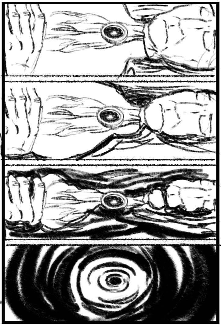 The thumbnail was really easy to draw, too. I drew the first panel and––since it was digital––I copied it three more times which allowed me to practice the slow creep of the water around her until, finally, she was gone. When I drew the last panel of the thumbnail, I sat back and looked at it and was overcome with emotion. I’m not sure which––sadness? pride? loss? emptiness?––I just know I was feeling something profound.