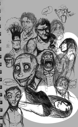 Since then, she sat as a few drawings in one of my patent-pending “sketchpiles”––conglomerations of sketches I do on a page that have no real connection with each other––until the need to draw chapter 2 presented itself. After too much time fretting over the design, the memory of this interesting face flashed through my mind. This felt like such a coup because I had never mined my old, random sketches for designs before.