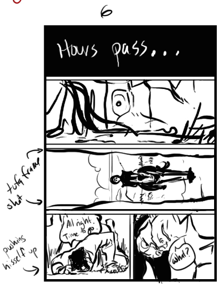 Though there are many things I’m quite proud of in this opening scene, were I to prioritize a list I would say that playing with panels––from perspective to point of view, to layout––could be at the top. The scene is so nebulous, spooky, and sparse that it really left a lot of room for experimentation that kind of (in my eyes) has to be calmed down in later scenes when Long John is interacting with a larger cast in a more concrete (not literally) setting.