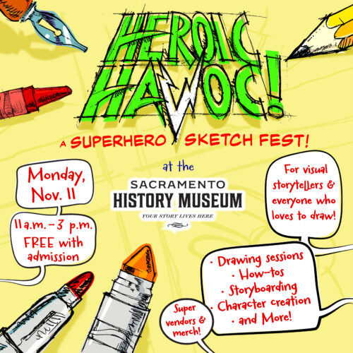 This coming Monday, November 11, I am excited to participate in this fun event hosted by the Sacramento History Museum. This is the second time I’ve had the pleasure of working with them (since 2022’s “How the West Was Drawn” workshops run by Eben Burgoon), and this even looks like it’s going to be incredibly fun.