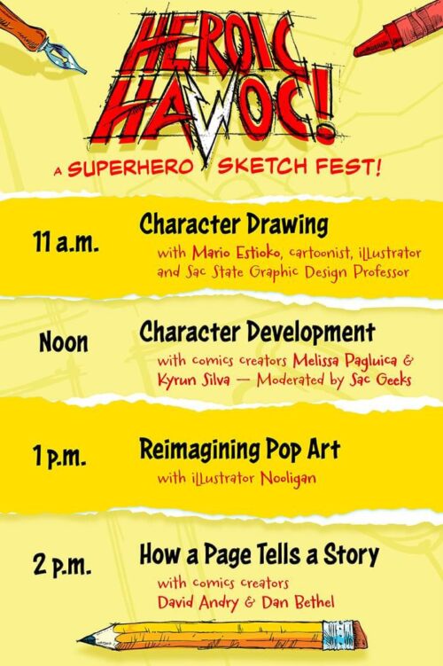 11:00 am – Character Drawing with Mario Estioko, cartoonist, illustrator and Sac State Graphic Design Professor