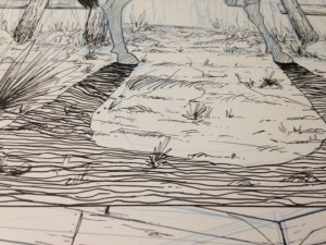 The next page is nearly done and it’s got a bit of artistic experimentation that I’m eager to share with you. Hint: white ink.