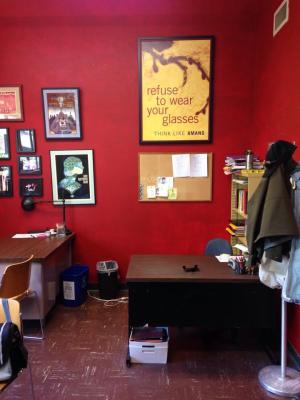 For the solitary creative, the inverse is true for our workspaces. For me, my office is a chrysalis inside of which I can metaphorically disrobe because I am surrounded by “me.” It’s the compartmentalization of the “me” in the area that allows for focus and work; I get to hang “myself” up on a hanger through the arrangement of inspiration, nostalgia, and tools of my trades. These disparate tapestries signal safety to me, so I can just concentrate on what needs to get done. The office is, in many ways, a more careful construct than my outward presentation (for some, this is not a surprise; nor is it a larger effort), because here I need to actually produce.