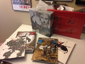 Rounding out the tourism the last corner of the room, which features my poorly organized bookshelf with a bunch of Transformers on it. This is where I keep the fiction––history, mostly––as well as my manga collections. The top shelf is dedicated to translations of The Iliad and The Odyssey; I try to collect as many different versions as possible and speak to my secret desire to become a Classicist.
