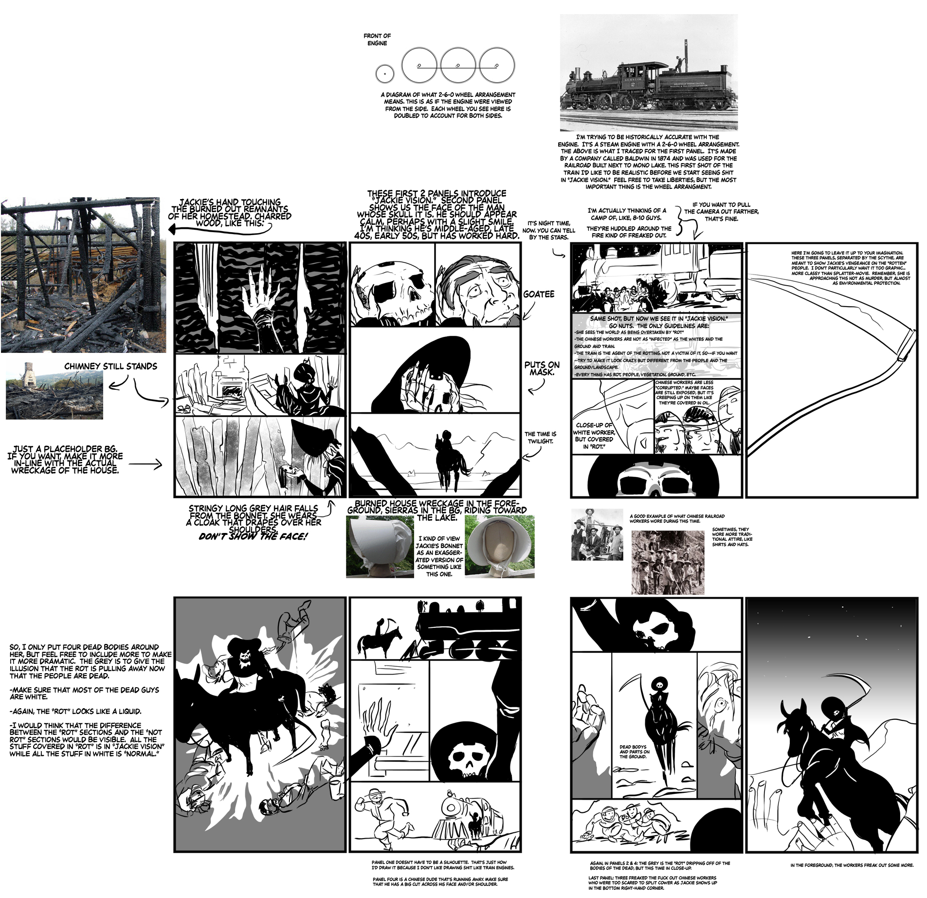 What I can’t emphasize enough is Josh’s persistence to literally make art. He not only makes images, but he makes the canvases and has probably made his own paint and brushes (if not brushes, at least other painting tools). He does photography––a lot of pinhole photography––and his literally made cameras from scratch and develops the film himself. He disassembles his vehicles and puts them back together again. Sure, part of it is expense, but he says in the podcast it’s about “knowing how to make a painting” where “painting” can be a variable for any creative endeavor. Before he sits down to do nearly anything, he has to know everything about, to internalize it, and make it his own. That’s part of what excited me about getting him to draw these pages because I wanted to see how he deconstructed her character.