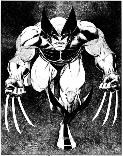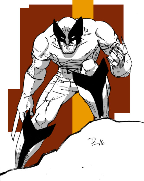 There are a few requirements for Wolverine, but are prioritized around the iconographic aspects of his costume and superpowers: the pointy mask, the claws, and––if unmasked––his pointy hair. Secondly, his small stature, hairy arms, and costume choice (he’s had several, though for those in the know––and as is evident by my choice of images and my own drawing––his “brown and tan” costume is my favorite) tend to be recognizable milestones that are more malleable. Though that seems like a pretty rigorous checklist, there is quite the range for exaggeration and interpretation that artists can weave through those eyelets.