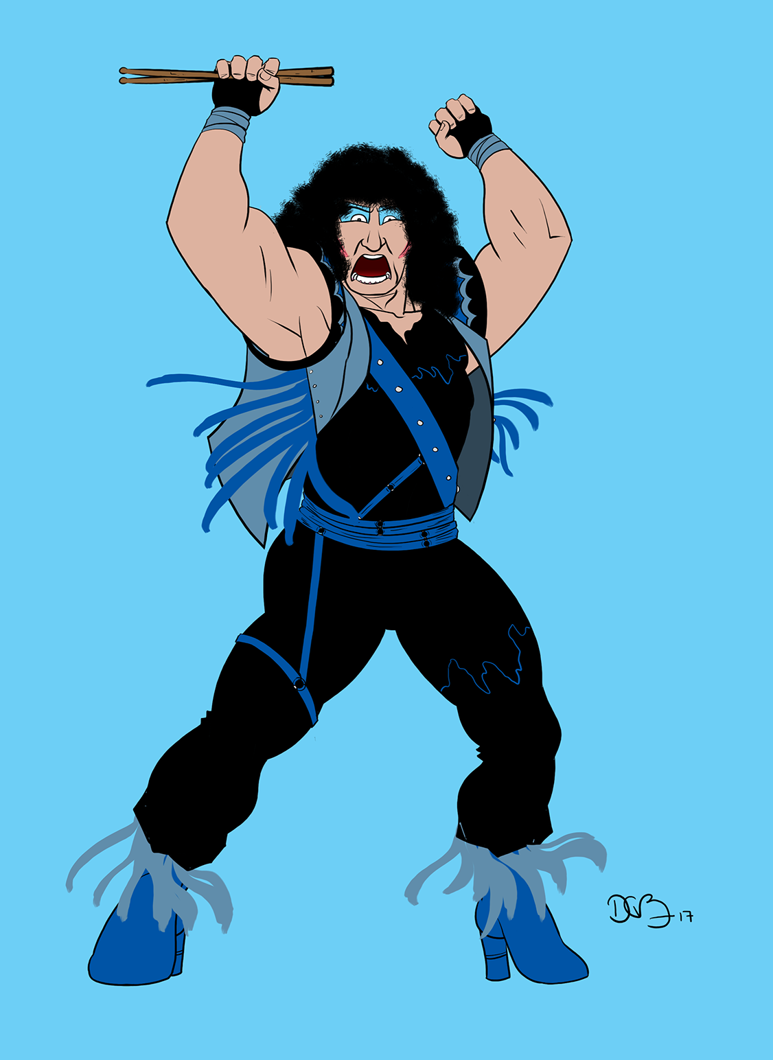 But he was, apparently, more than just the drummer. The rest of the band regularly refers to him as “the nice one,” best exemplified by his behavior during the band’s wilderness years after their breakup. He was the one member to keep in touch with all of the others (despite the fact that he left the band a year before they officially called it quits), just checking in and relaying the health and happiness of each to whomever he was catching up with. This generosity of personality is clear in the videos the band made, as well. Already wacky beyond belief, he was the one band member that actually seemed at home in the live-action cartoons Dee Snider created for the band, culminating in the video for the ballad, “The Price.” In it, the band rehearses for a big arena show. They’re all in street clothes (albeit still ridiculous) and are being very serious as they sing this very serious song (note: a ballad not about love, girls, sex, cars, or drinking––who knew). And then… A.J. shows up wielding two oversized drumsticks and gives them a go on his kit.