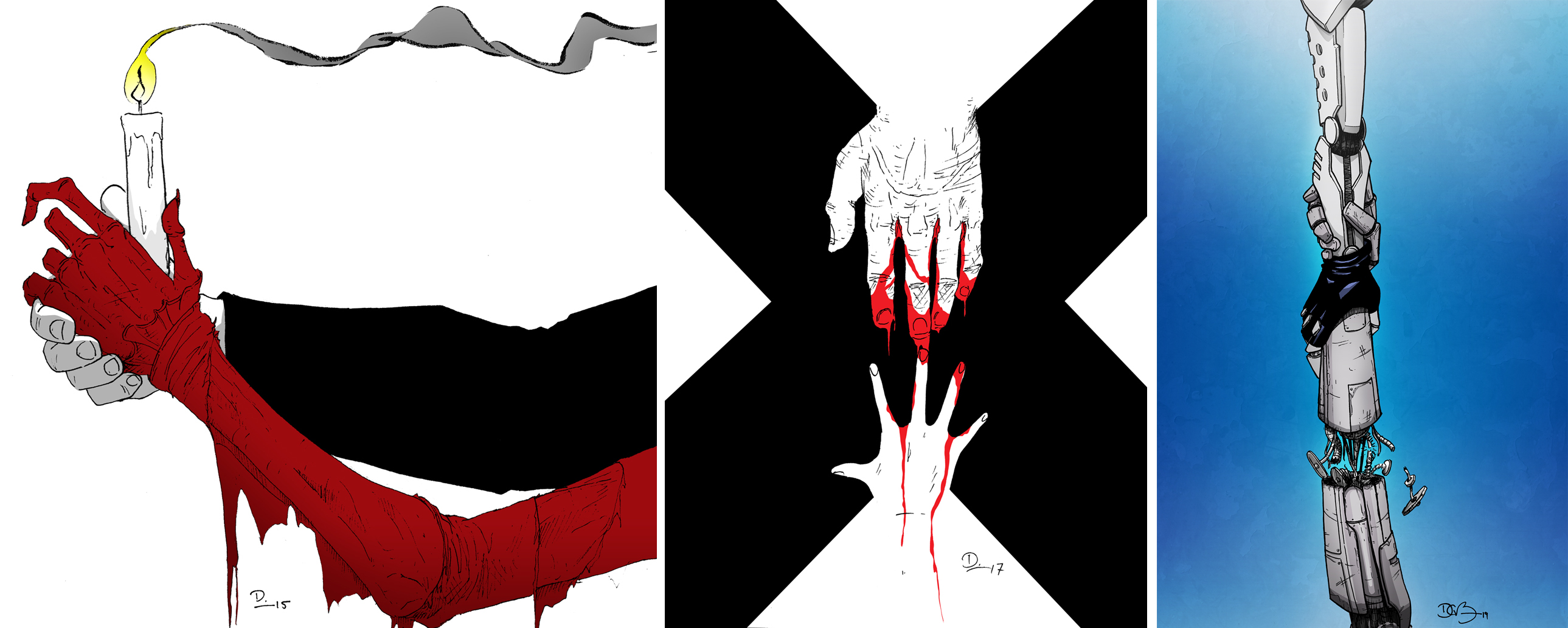 I guess, subconsciously, that realization opened a door that I all to often just walked by and––especially lately––I feel much more free and open to drawing anything now that I know I have a grasp on a method that results in something that looks like a D. Bethel drawing and not simply an imitator. It’s not because it’s easy to draw––hands are not easy to draw––it’s just that their language is clearer to me than trying to create an entire scene or character pinup, though those would undoubtedly sell better.