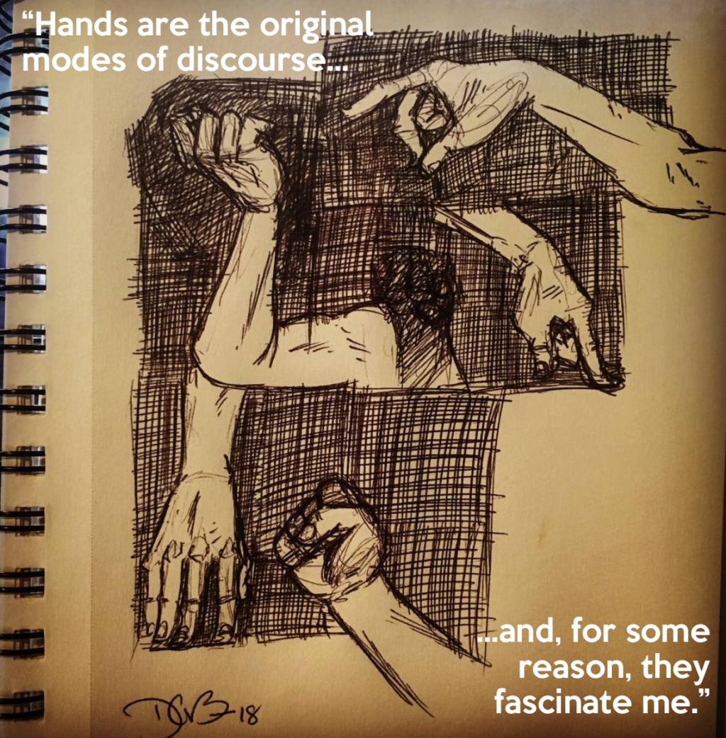 However, hands are our main physical connections to other people––friend, family, and foe. They are the original modes of discourse and, for some reason, they fascinate me.