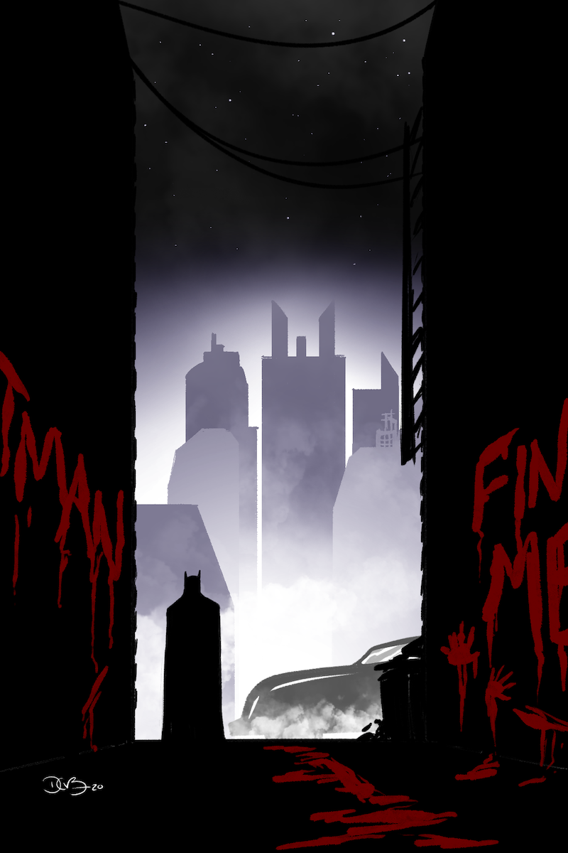 This year i wanted to try something different, fueled partially by the idea of wanting to draw a piece that emphasized the detective aspect of the character. It was also fueled by the technology I’ve been using to try and draw more regularly; specifically, the app Procreate on the iPad Pro.