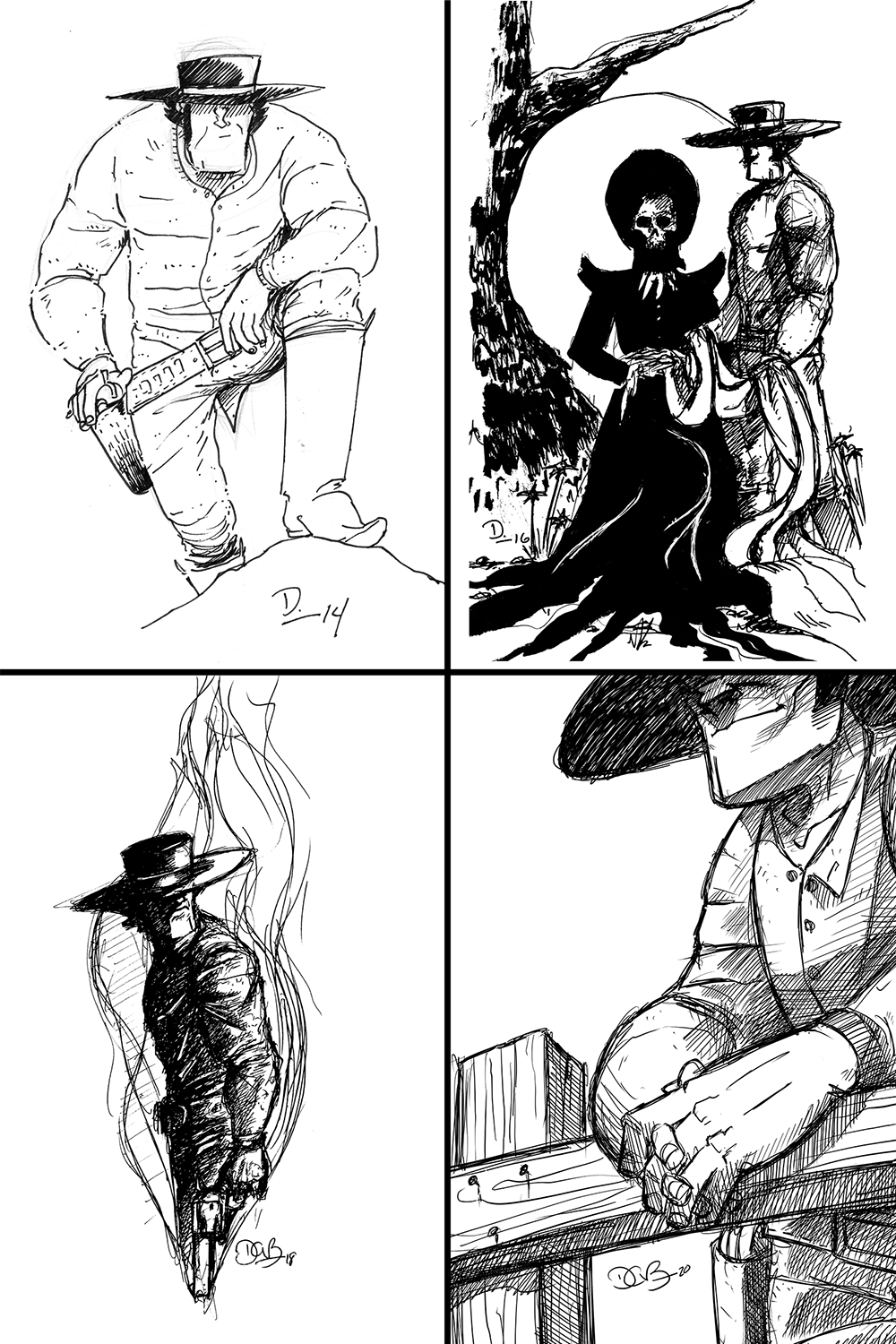 The frontispiece for every Long John book has been unique (some of them have even been featured Sketch Friday drawings), though only the frontispiece for volume 1 was explicitly created for the book. The illustrations featured in volumes 2-4 were all sketchbook drawings––ball point pen drawings made either to 1. come up with ideas for the cover or 2. find a “tone” for the upcoming chapter to be written and drawn.
