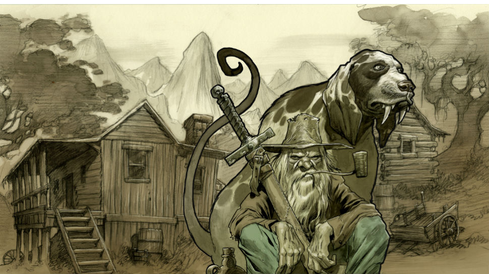 I don’t really know how to describe Hillbilly. I came to the first collected volume with little knowledge of the premise. Instead, I bought it sight unseen because I love the art and enjoy the writing of its creator, Eric Powell, who wrote and drew the crudely hilarious, powerful, and beautiful (and often very, very gross, making it hard to recommend to people) comic series, The Goon, before this. Like The Goon, Hillbilly is an unexpectedly satisfying mashup of genres, in this case a seamless blending of fantasy and tall tale southern gothic. It’s clearly a dark Americana but there are no guns; instead, there are swords and axes and fantastical creatures outside of ramshackle log cabins. The following panel is the entire comic in a single image: