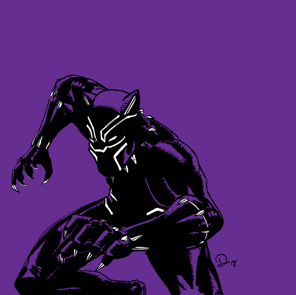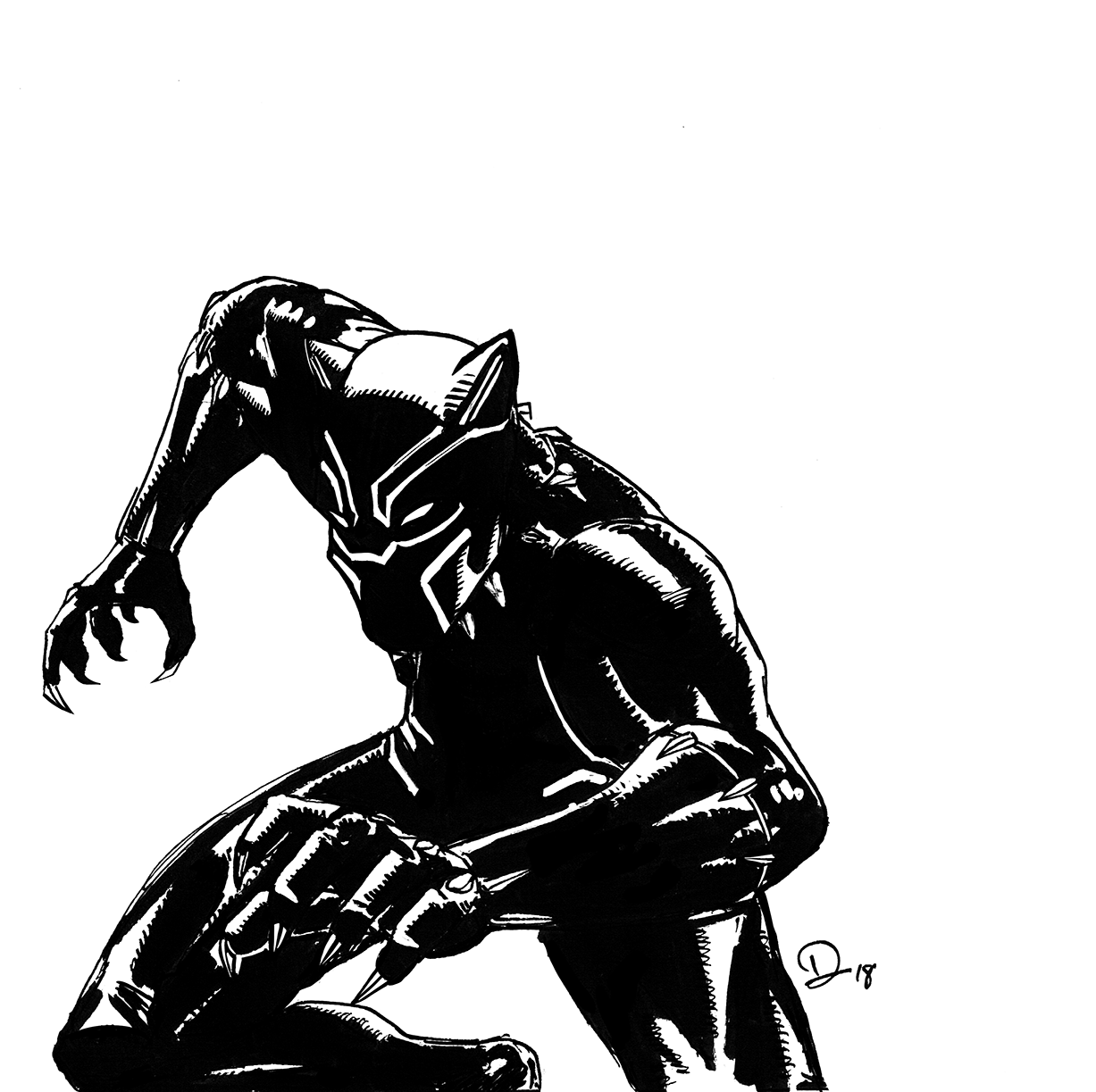 Like the rest of the world, Nicole and I saw Black Panther and thoroughly enjoyed it. This last week, I was listening to a conversation about the movie and was inspired to try my hand at drawing in a more traditional superhero style. It’s quick and messy, but it was fun. I have been thinking lately what a “superhero style” drawing of mine would look like if I sat down and actually worked it out with rendering and what not. Since I drew this quickly (I felt guilty because I should have been coloring Long John instead of doing this), it isn’t my full effort, but I was surprised by how this turned out.